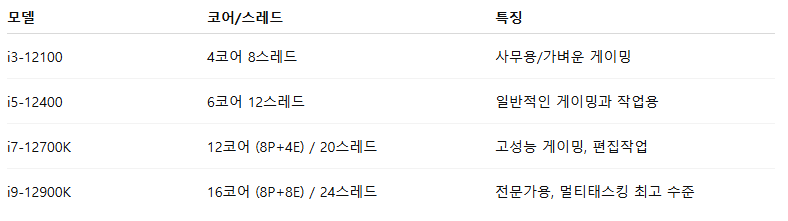 - i5: 대부분 사용자에게 충분 (게이밍, 일상 멀티태스킹)