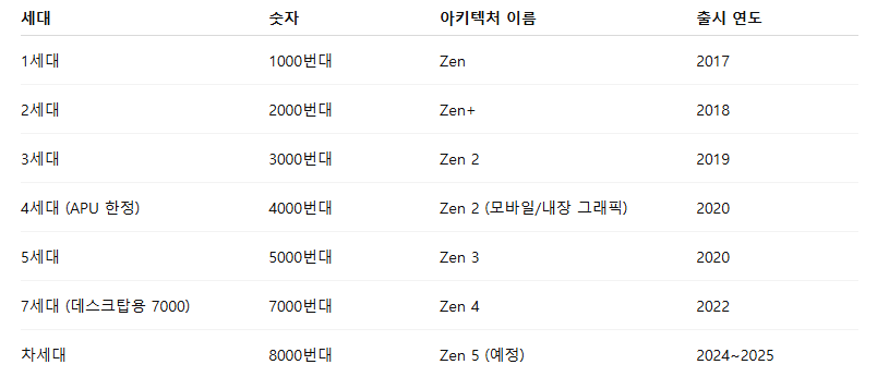 🔢 Ryzen 숫자 체계 자세히 설명