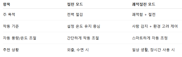 - 의미: 쾌적함은 유지하면서도 에너지를 아끼는 절전 모드입니다.