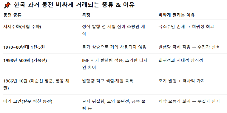 - 역사성: 특정 사건(예: IMF 시기, 화폐 개혁 등)과 연관된 동전.