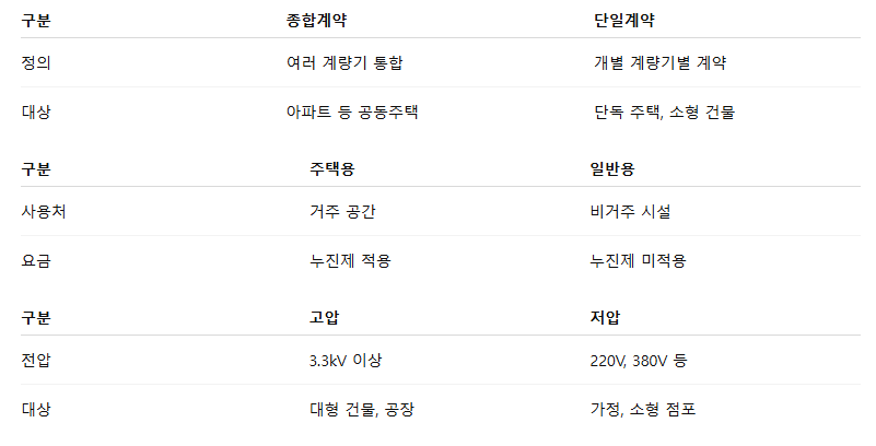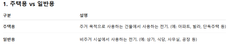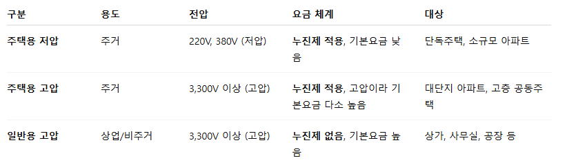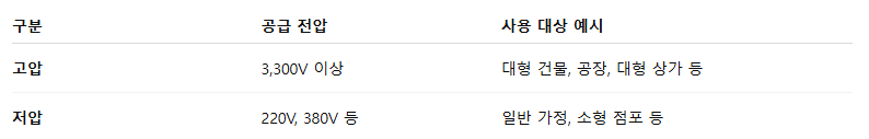 ✅ 1. 주택용 저압 vs 주택용 고압 vs 일반용 고압 – 기본 차이