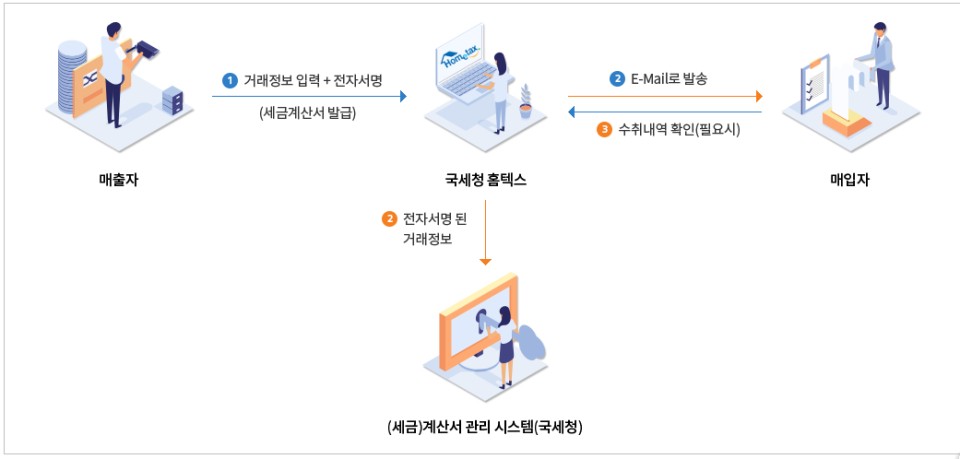 종이세금계산서 대신 의무적으로 전자세금계산서를 발급하여야 합니다.