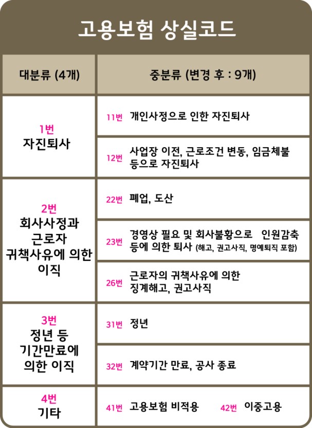 1. 고용보험 상실코드 종류 및 의미