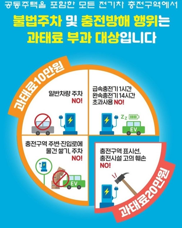 - 급속 충전의 경우 1시간을 초과하여 주차 : 10만원