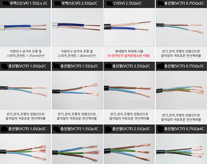 4. 부하 용량별 전선 & 차단기 선정 예시