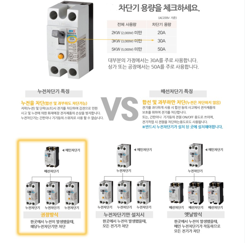 → 배전반 표준 차단기: 60A 차단기 사용
