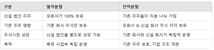 2. 물적분할 vs. 인적분할 비교