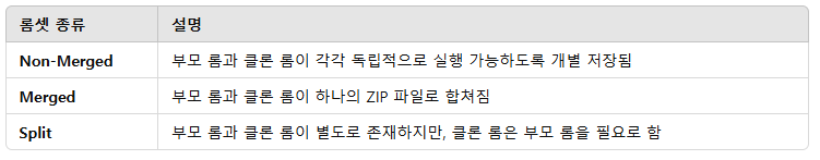 - 부모 롬 없이 단독 실행이 불가능한 경우가 많음