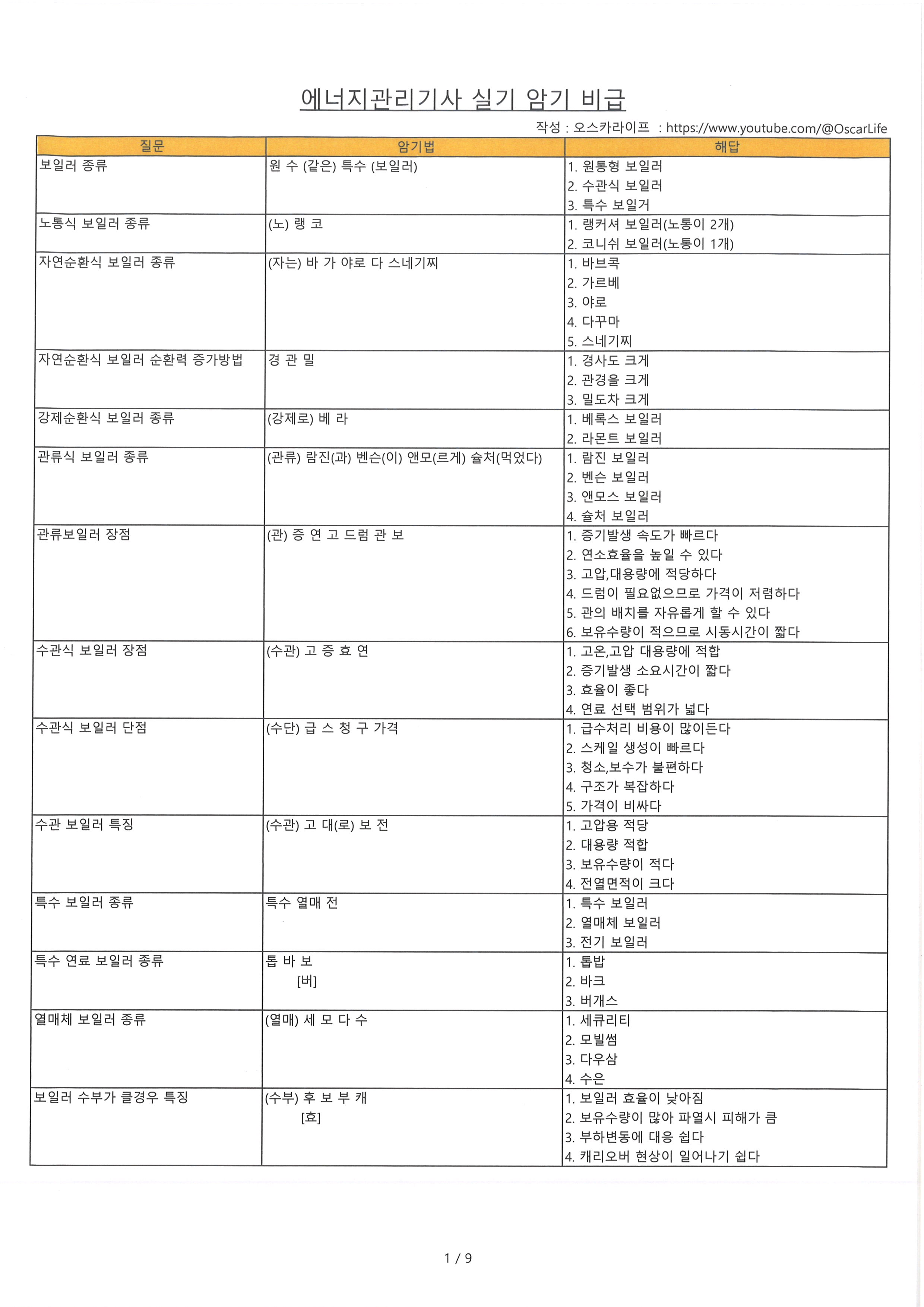 대부분 암기방법은 에너지아카데미 교재를 참고 하였으며, 제가 추가하거나 변경한것도 있습니다.